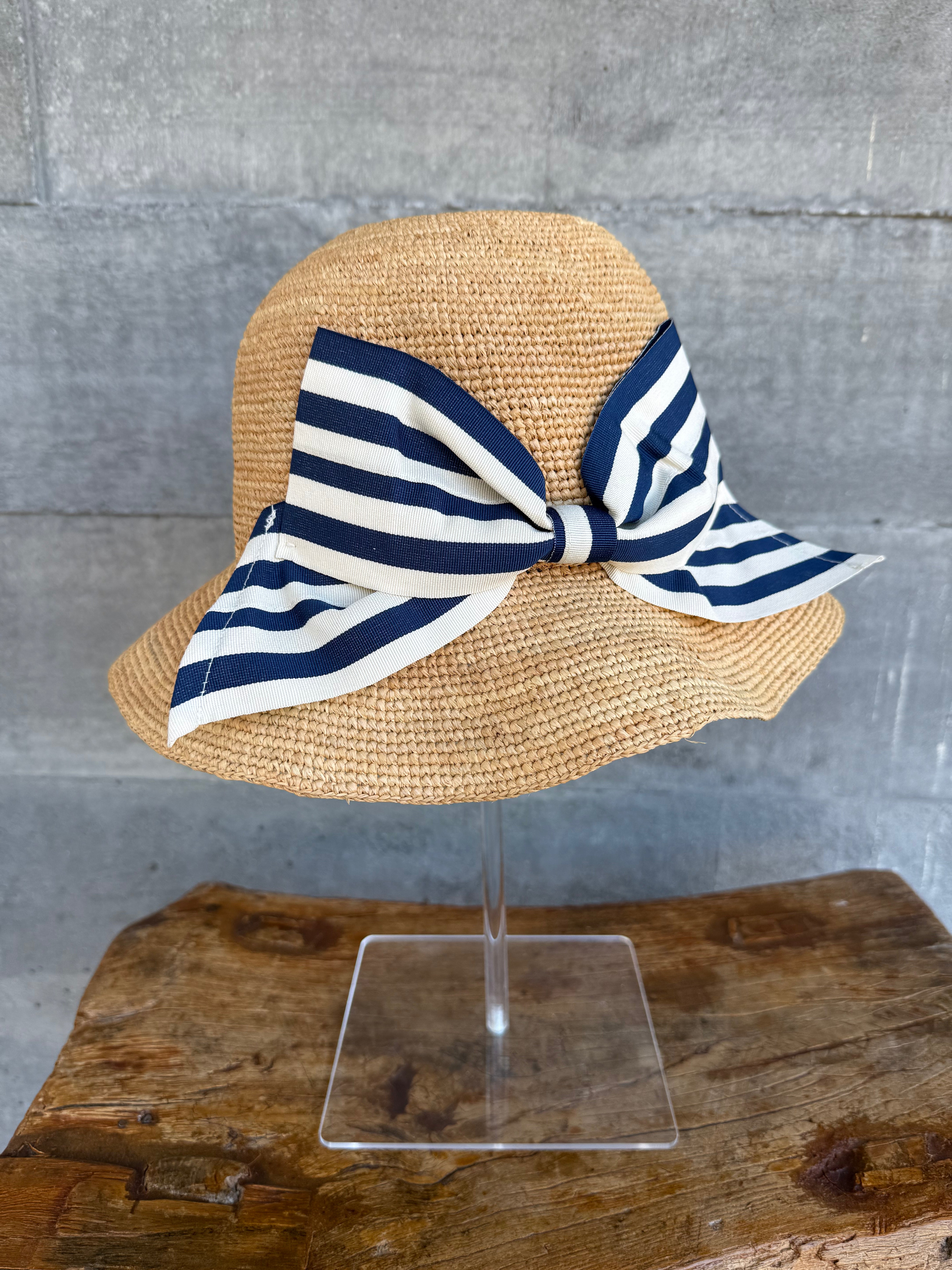 Betsy Bow Raffia Hat Navy/White