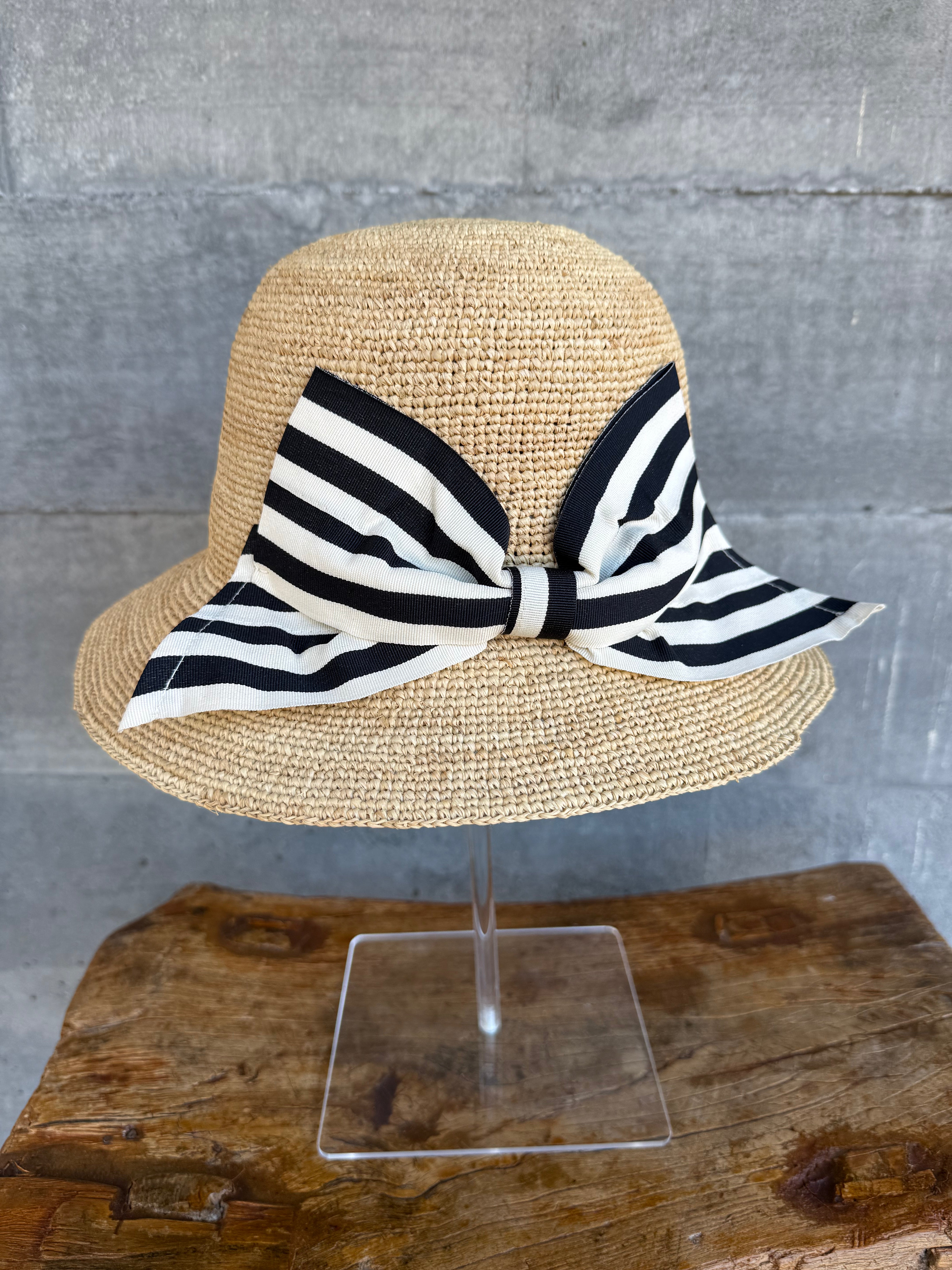 Betsy Bow Raffia Hat Black/White
