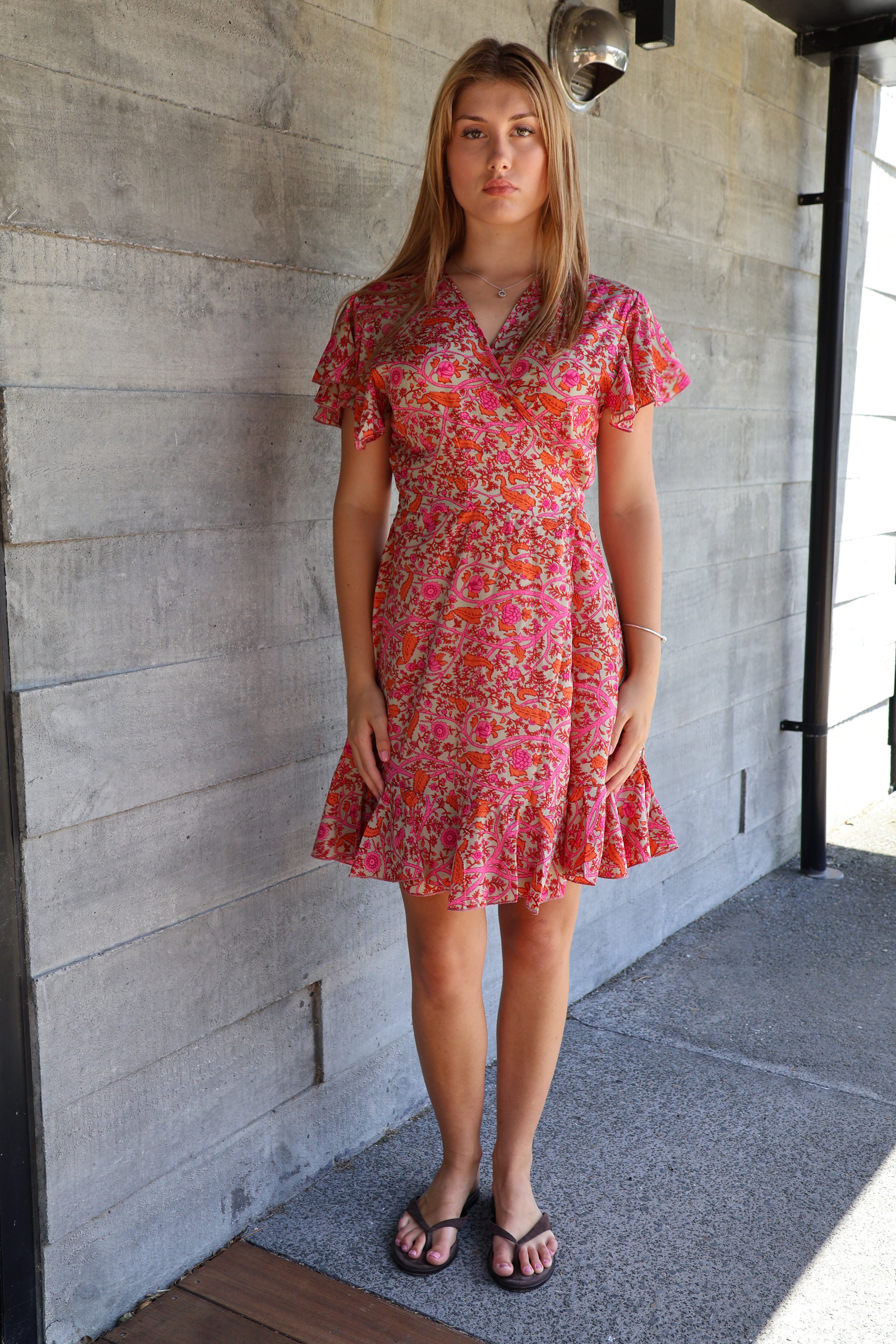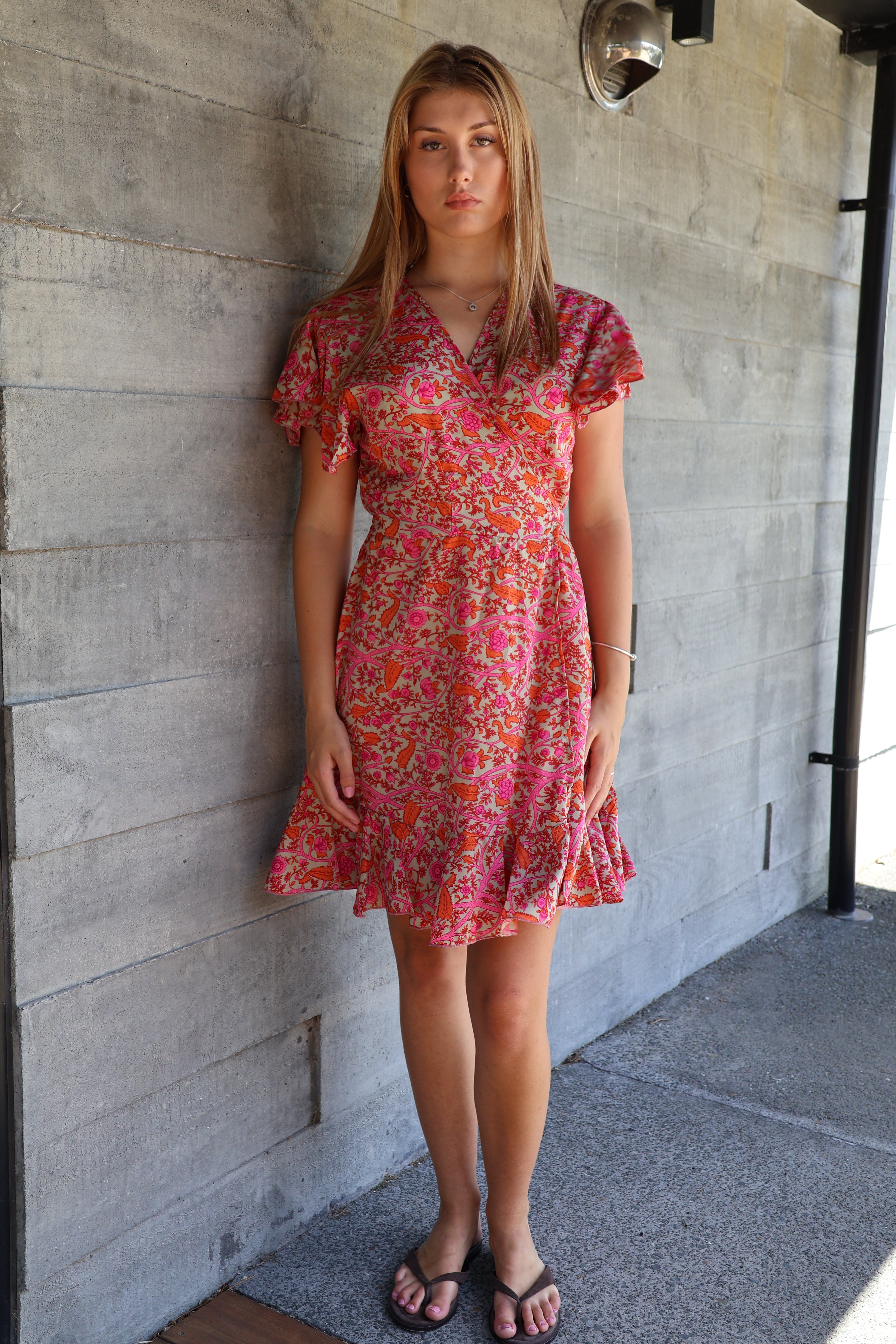 Yarrow Short Wrap Dress Pink/Orange