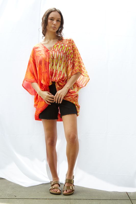 Palms Kaftan Pure Silk Bimini Dress Orange