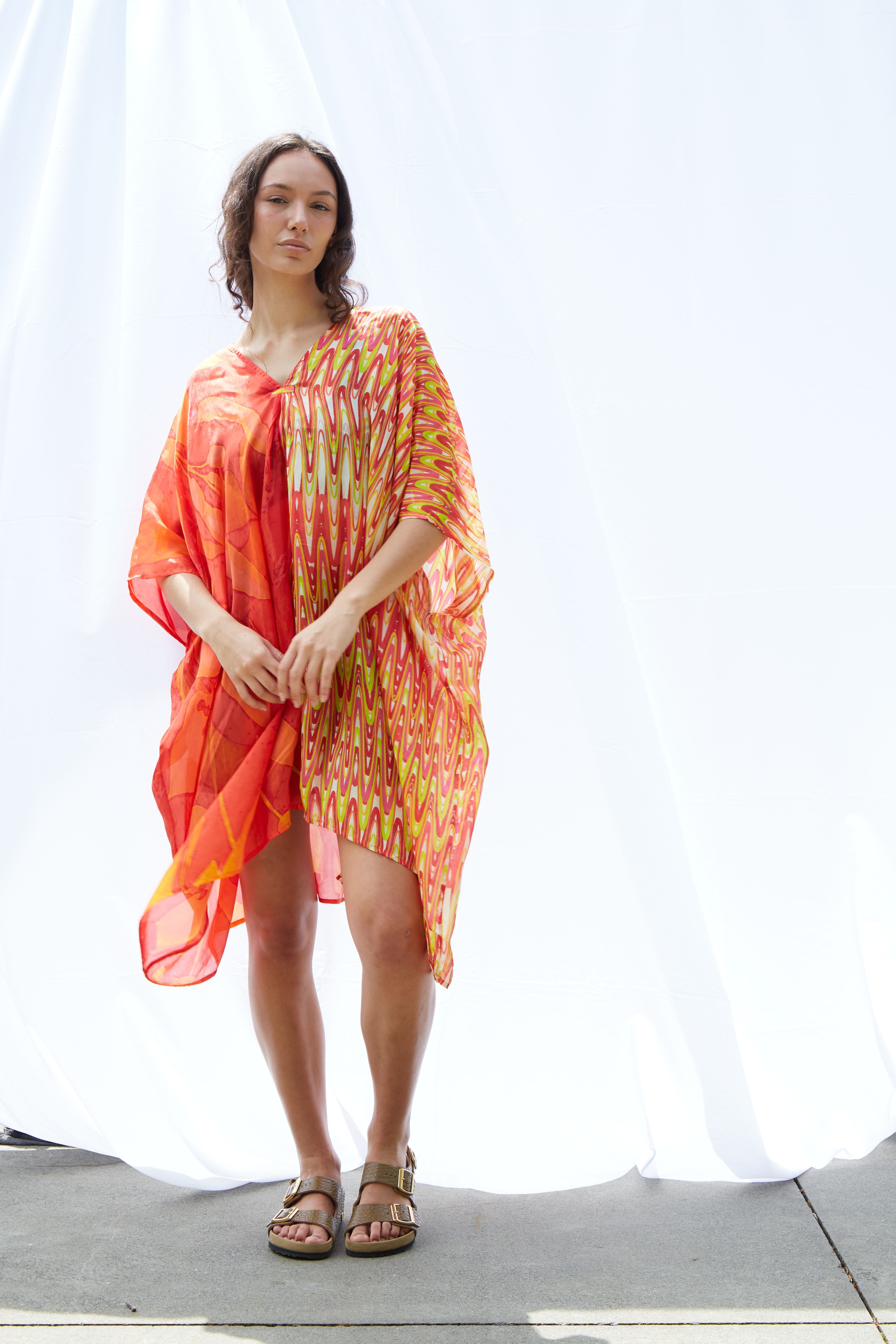 Tasia Midi Kaftan Pure Silk Bimini Coral