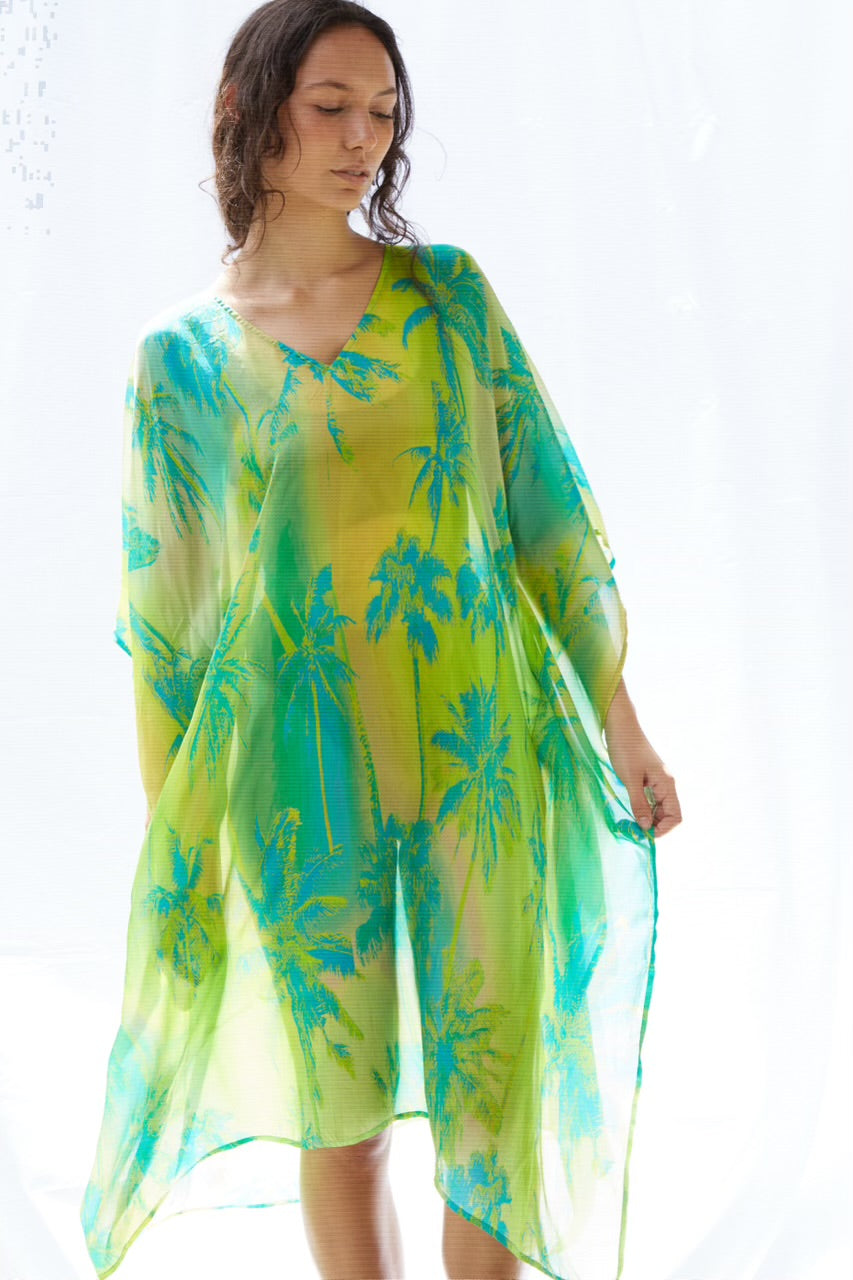 Palms Kaftan Pure Silk Dress Bimini Greens