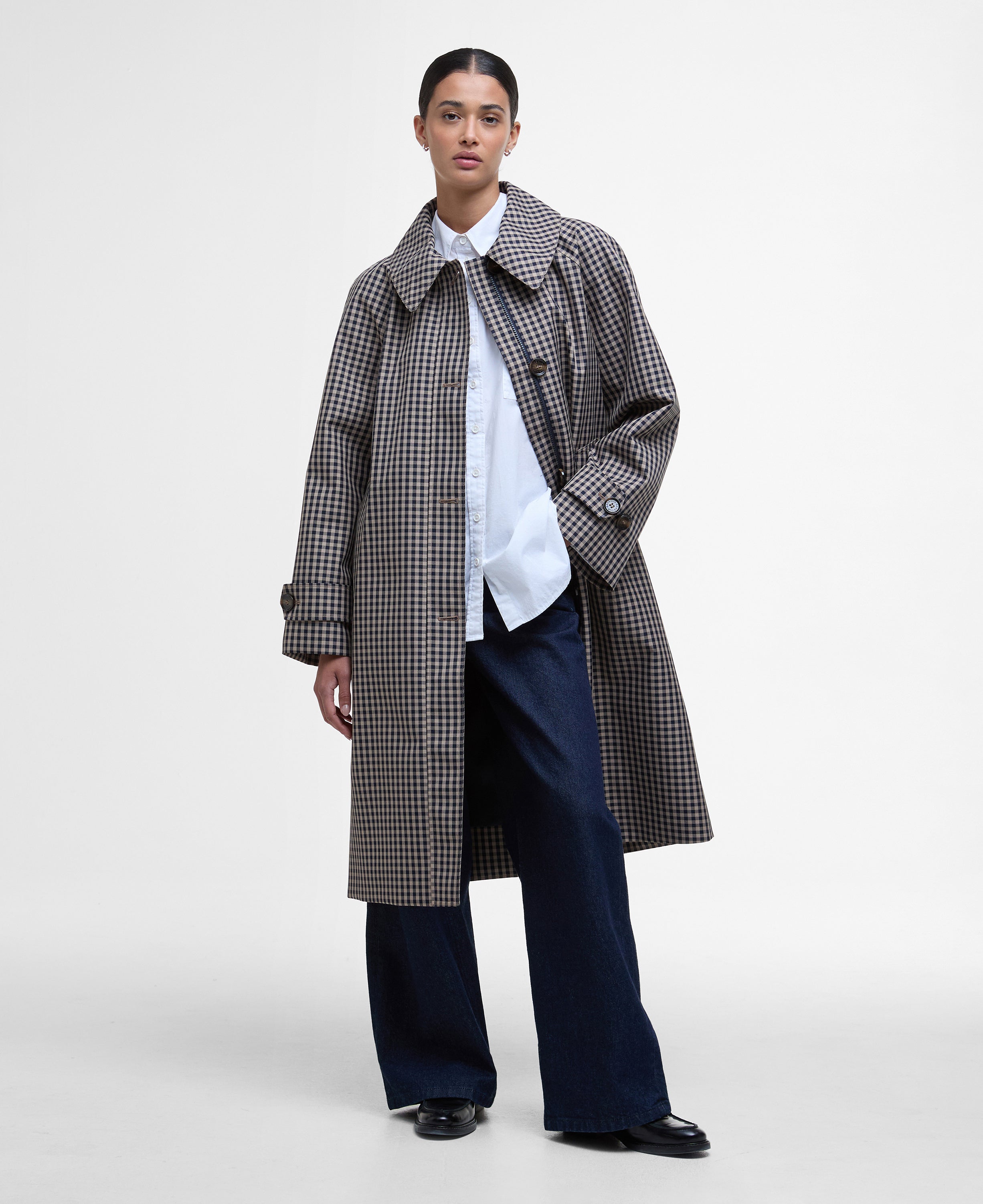 Barbour Nadine Checked Showerproof Car Coat Navy/Sand