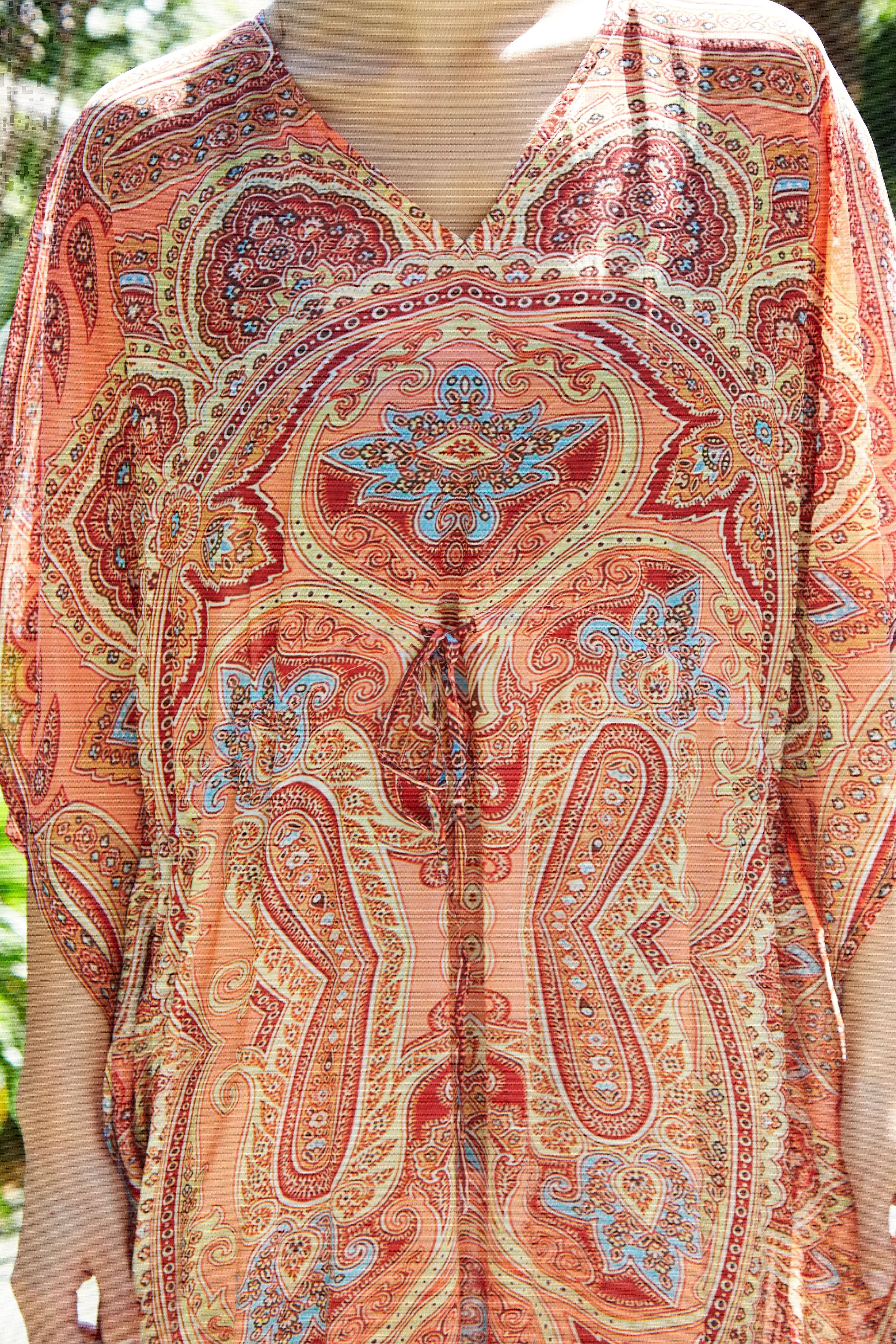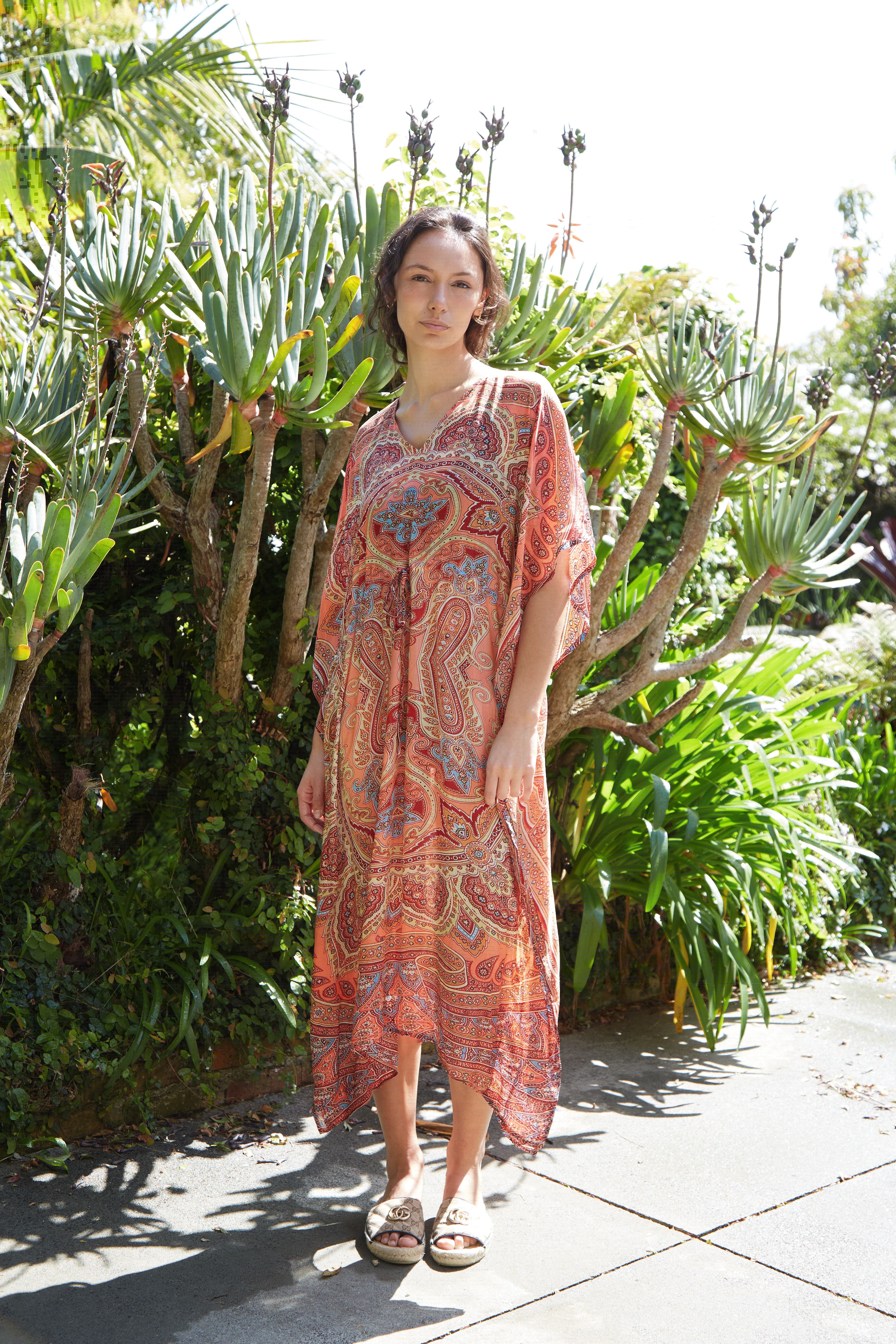 Amandita Kaftan Pure Silk Dress Bimini Sunset